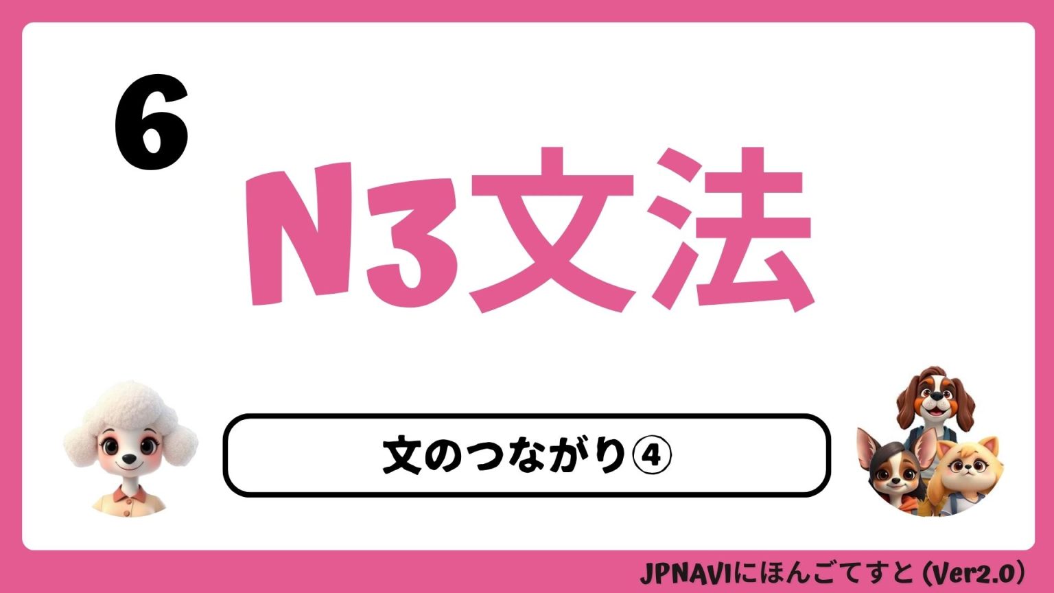 【会員限定かいいんげんてい】テストを送信そうしん、動画どうがを見たら、1ポイントを獲得かくとく! N3文法6 2024.12.262025.11.13 このページはJPNAVI会員かいいんが使つかえます。This page can be used by JPNAVI members. 会員登録は無料です 無料むりょう会員登録かいいんとうろくをするSign up for a free member ログインする LINEでログインGoogleで続行 既存ユーザのログインユーザー名またはメールアドレスパスワード上に表示された文字を入力してください。Facebookで続行Googleで続行 ログイン状態を保存する パスワードを忘れた場合 パスワードリセットはじめての方はこちら 新規ユーザー登録