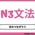 【会員限定かいいんげんてい】テストを送信そうしん、動画どうがを見たら、1ポイントを獲得かくとく! N3文法7 2024.12.302025.07.10 このページはJPNAVI会員かいいんが使つかえます。This page can be used by JPNAVI members. 会員登録は無料です 無料むりょう会員登録かいいんとうろくをするSign up for a free member ログインする LINEでログインGoogleで続行 既存ユーザのログインユーザー名またはメールアドレスパスワード上に表示された文字を入力してください。Facebookで続行Googleで続行 ログイン状態を保存する パスワードを忘れた場合 パスワードリセットはじめての方はこちら 新規ユーザー登録