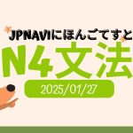 【会員限定かいいんげんてい】テストを送信そうしん、動画どうがを見たら、1ポイントを獲得かくとく! N4文法(ぶんぽう)8 2025.01.232025.05.22 このページはJPNAVI会員かいいんが使つかえます。This page can be used by JPNAVI members. 会員登録は無料です 無料むりょう会員登録かいいんとうろくをするSign up for a free member ログインする LINEでログインGoogleで続行 既存ユーザのログインユーザー名またはメールアドレスパスワード上に表示された文字を入力してください。Facebookで続行Googleで続行 ログイン状態を保存する パスワードを忘れた場合 パスワードリセットはじめての方はこちら 新規ユーザー登録