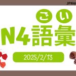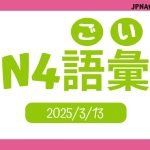 【会員限定かいいんげんてい】テストを送信そうしん、動画どうがを見たら、1ポイントを獲得かくとく! N4語彙(ごい)15 2025.03.062025.05.22 このページはJPNAVI会員かいいんが使つかえます。This page can be used by JPNAVI members. 会員登録は無料です 無料むりょう会員登録かいいんとうろくをするSign up for a free member ログインする LINEでログインGoogleで続行 既存ユーザのログインユーザー名またはメールアドレスパスワード上に表示された文字を入力してください。Facebookで続行Googleで続行 ログイン状態を保存する パスワードを忘れた場合 パスワードリセットはじめての方はこちら 新規ユーザー登録