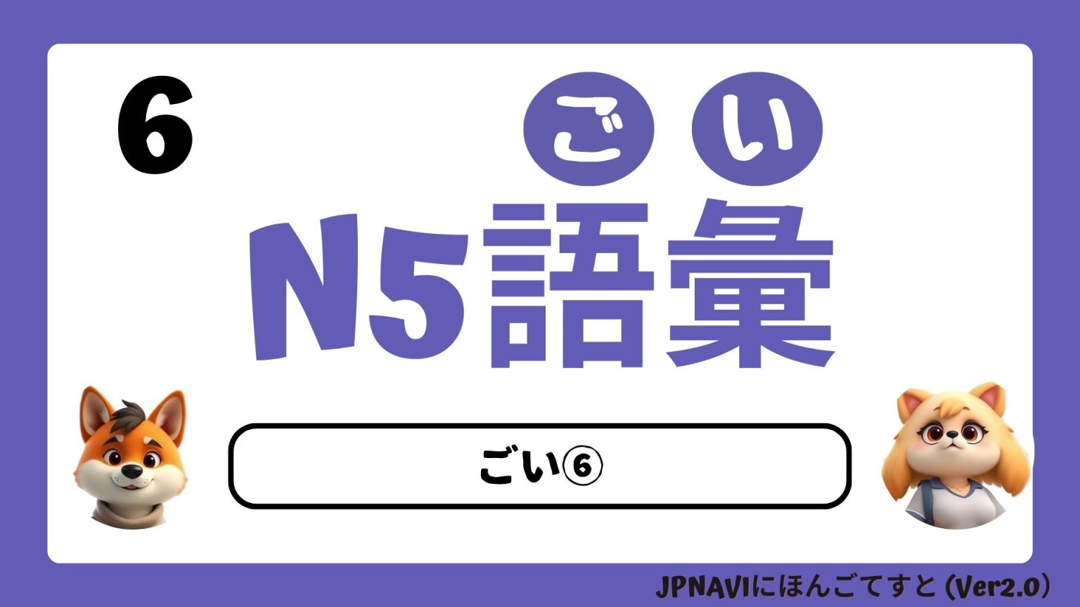【会員限定かいいんげんてい】テストを送信そうしん、動画どうがを見たら、1ポイントを獲得かくとく! N5語彙(ごい)6 2024.11.252025.09.23 このページはJPNAVI会員かいいんが使つかえます。This page can be used by JPNAVI members. 会員登録は無料です 無料むりょう会員登録かいいんとうろくをするSign up for a free member ログインする LINEでログインGoogleで続行 既存ユーザのログインユーザー名またはメールアドレスパスワード上に表示された文字を入力してください。Facebookで続行Googleで続行 ログイン状態を保存する パスワードを忘れた場合 パスワードリセットはじめての方はこちら 新規ユーザー登録