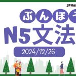 【会員限定かいいんげんてい】テストを送信そうしん、動画どうがを見たら、1ポイントを獲得かくとく! N5文法(ぶんぽう)7 2024.12.302025.07.10 このページはJPNAVI会員かいいんが使つかえます。This page can be used by JPNAVI members. 会員登録は無料です 無料むりょう会員登録かいいんとうろくをするSign up for a free member ログインする LINEでログインGoogleで続行 既存ユーザのログインユーザー名またはメールアドレスパスワード上に表示された文字を入力してください。Facebookで続行Googleで続行 ログイン状態を保存する パスワードを忘れた場合 パスワードリセットはじめての方はこちら 新規ユーザー登録