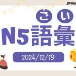 【会員限定かいいんげんてい】テストを送信そうしん、動画どうがを見たら、1ポイントを獲得かくとく! N5語彙(ごい)8 2024.12.092025.10.13 このページはJPNAVI会員かいいんが使つかえます。This page can be used by JPNAVI members. 会員登録は無料です 無料むりょう会員登録かいいんとうろくをするSign up for a free member ログインする LINEでログインGoogleで続行 既存ユーザのログインユーザー名またはメールアドレスパスワード上に表示された文字を入力してください。Facebookで続行Googleで続行 ログイン状態を保存する パスワードを忘れた場合 パスワードリセットはじめての方はこちら 新規ユーザー登録