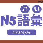【会員限定かいいんげんてい】テストを送信そうしん、動画どうがを見たら、1ポイントを獲得かくとく! N5語彙(ごい)21 2025.05.082025.05.22 このページはJPNAVI会員かいいんが使つかえます。This page can be used by JPNAVI members. 会員登録は無料です 無料むりょう会員登録かいいんとうろくをするSign up for a free member ログインする LINEでログインGoogleで続行 既存ユーザのログインユーザー名またはメールアドレスパスワード上に表示された文字を入力してください。Facebookで続行Googleで続行 ログイン状態を保存する パスワードを忘れた場合 パスワードリセットはじめての方はこちら 新規ユーザー登録