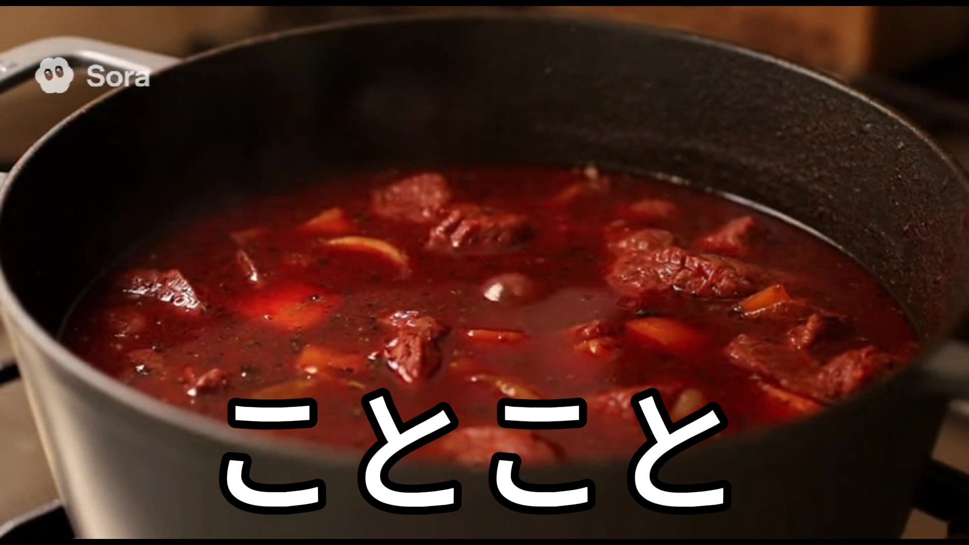 ことこと:弱い火でゆっくり時間をかけて煮るさま